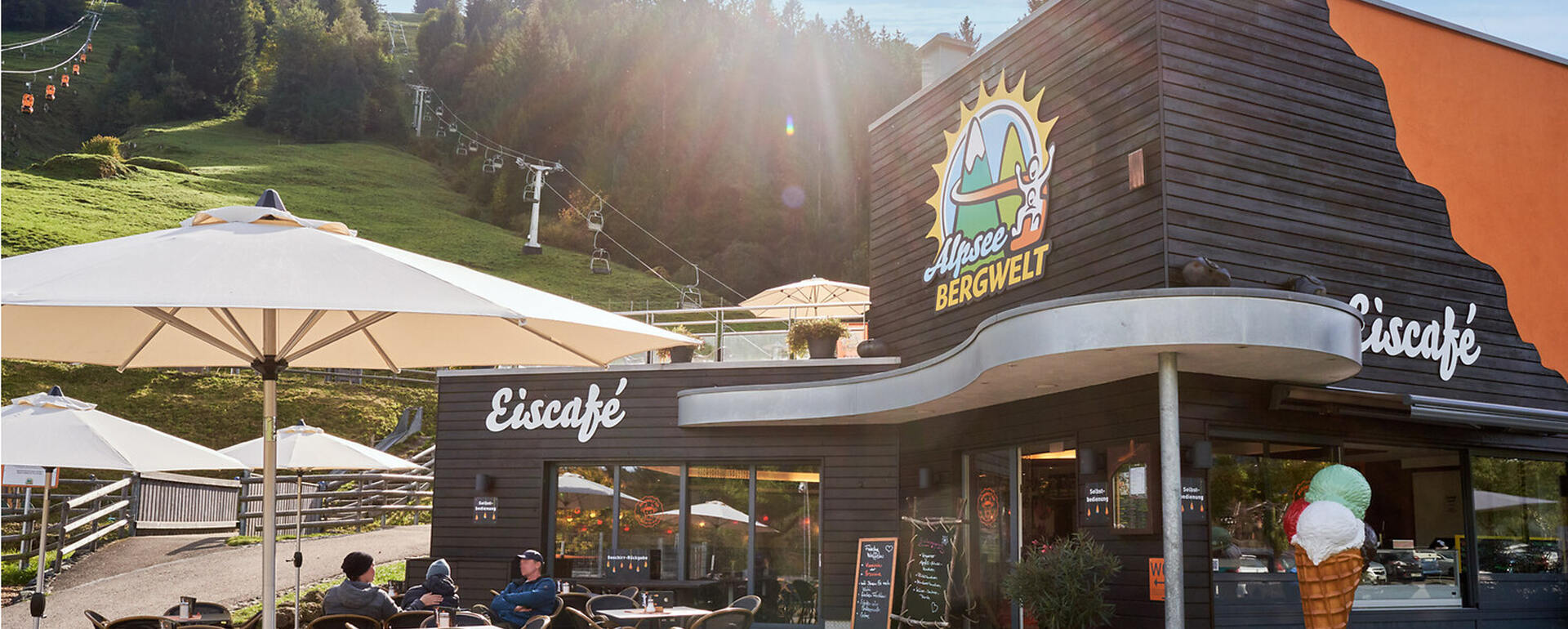 Da, wo es Bio-Eis, hausgemachte Kuchen und Kaffeespezialitäten gibt, ist der Genuss nicht weit. Unser Eiscafé ist euer Ruhepol und Pausenort auf jedem Teamevent. Auch die perfekte Location für gesellige Kaffee-Runden. Drinnen gemütlich, draußen auf der Terrasse sonniges Allgäu genießen. Ideal für kleine Gruppen, Familien oder Geburtstagsfeiern.