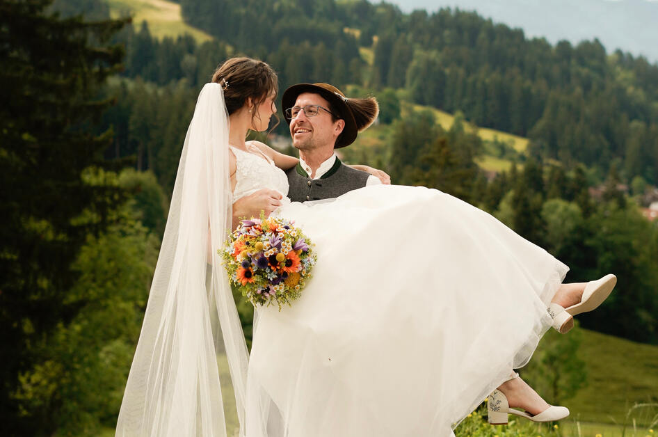 Lasst uns ein Fest ausrichten! Eins, das ihr nie vergessen werdet. Eure Hochzeit im Allgäu planen wir gemeinsam mit euch vom ersten Gespräch bis zum letzten Ton der Musik. Wir haben ein paar der wundervollsten Locations im Allgäu, in denen ihr es euch und euren Gästen gut gehen lassen könnt. Ihr liebt es ganz urig oder doch modern? Sprecht uns gerne an, denn wir können beides. Ob im Tal, auf der Hütte oder im kultigen Berghotel – wir richten euer Fest genau so aus, wie ihr es euch wünscht.